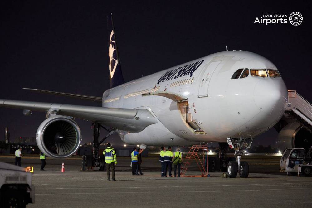 Toshkent xalqaro aeroportida Qanot Sharq aviakompaniyasining yangi havo kemasi kutib olindi