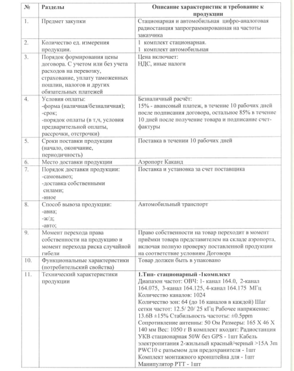 Statsionarni radiostansiya vositalarini yetkazib berish faoliyati bilan shug‘ullanuvchi barcha yetkazib beruvchilar o‘z takliflarini “Farg‘ona xalqaro aeroporti” MCHJ ma‘muriyatiga taqdim etishlari mumkin. Taqdim etilgan takliflar Radiostansiya vositalarini xarid qilib olishda uning boshlang‘ich narxini aniqlashda foydalaniladi. Statsionarni radiostansiya vositalarini bo‘yicha texnik topshiriq 3 varaqda ilova qilinadi. Murojat uchun manzil Farg‘ona shahar Aeroport ko‘cha 16 uy. Elekton manzil: info.feg@uzairports.com Mas’ul shaxs Oripov D.A. tel: 73 241 60 03. 99 727 11 68