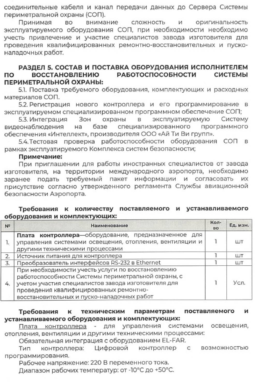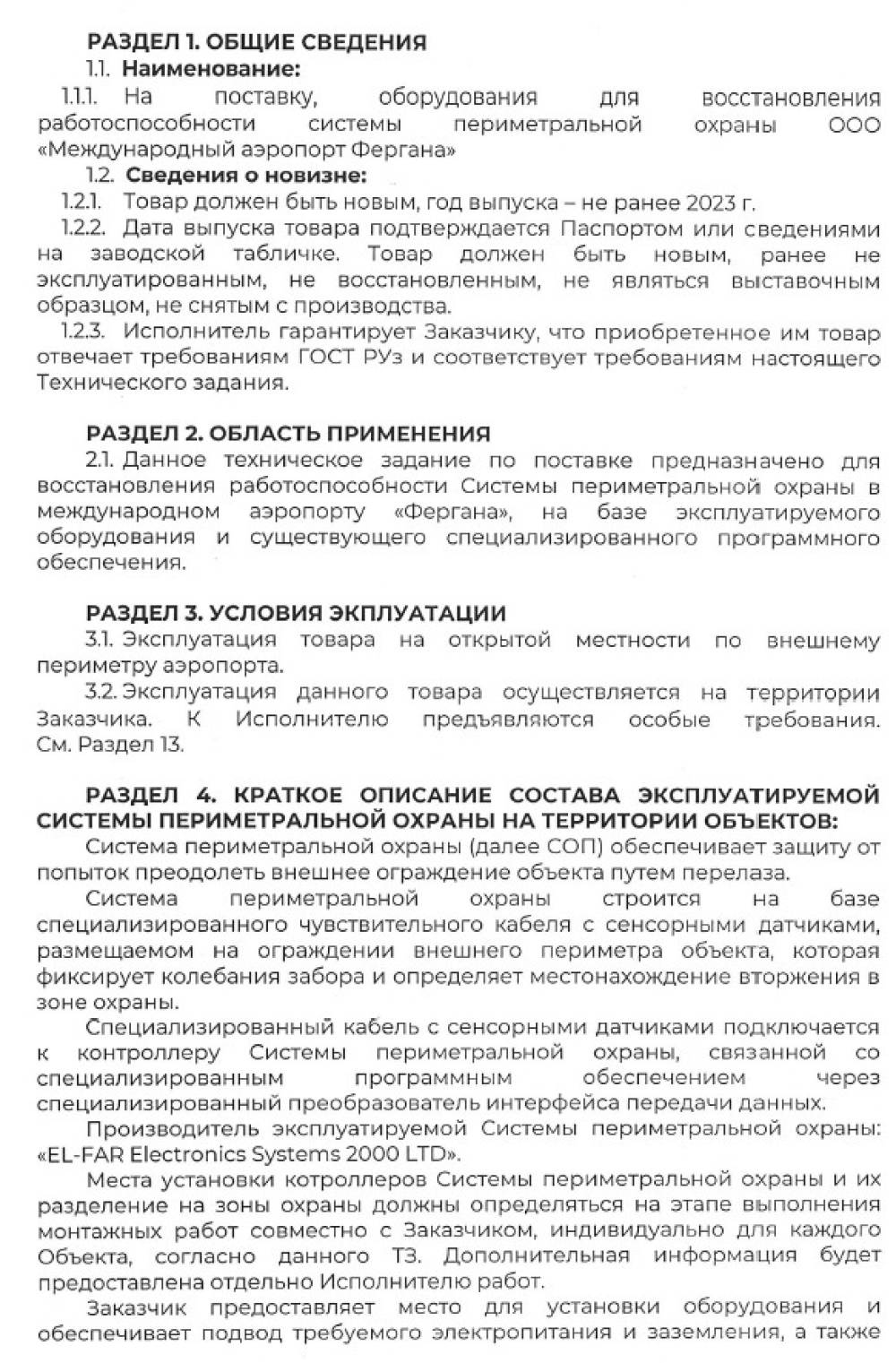 «Farg‘ona xalqaro aeroporti» MCHJning qo'riqlash tizimining nosoz jixozlarini yetkazib, o'rnatib berish bilan shug‘ullanuvchi barcha yetkazib beruvchilar o‘z takliflarini Farg‘ona xalqaro aeroporti” MCHJ ma‘muriyatiga taqdim etishlari mumkin. Taqdim etilgan takliflar ushbu xizmatni xarid qilib olishda uning boshlang‘ich narxini aniqlashda foydalaniladi. Texnik topshiriq 7 varaqda ilova qilinadi. Murojat uchun manzil Farg‘ona shahar Aeroport ko‘cha 16 uy. Elekton manzil: info.feg@uzairports.com Mas’ul shaxs AX boshlig’i Urinboyev B.P. tel: 73 241 60 03. 94 555 10 70