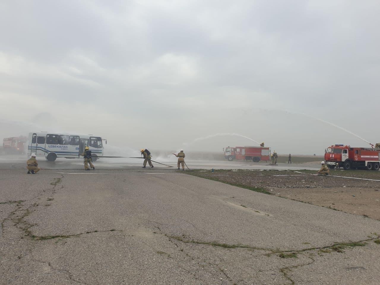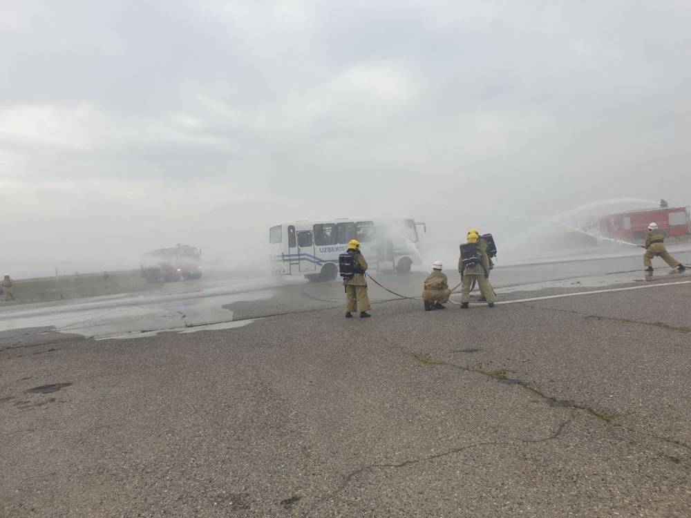 Ўқув машғулотига аэропорт қутқарув таъминот ишчи гуруҳи ҳамда аэропортга ёндош ҳарбий қисм қутқарув гуруҳи, вилоят ФВБ, соғлиқни сақлаш бошқармаси ходимлари жалб этилди.